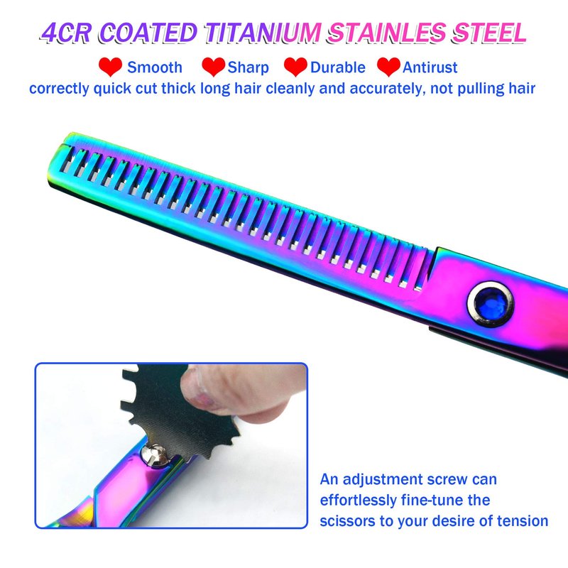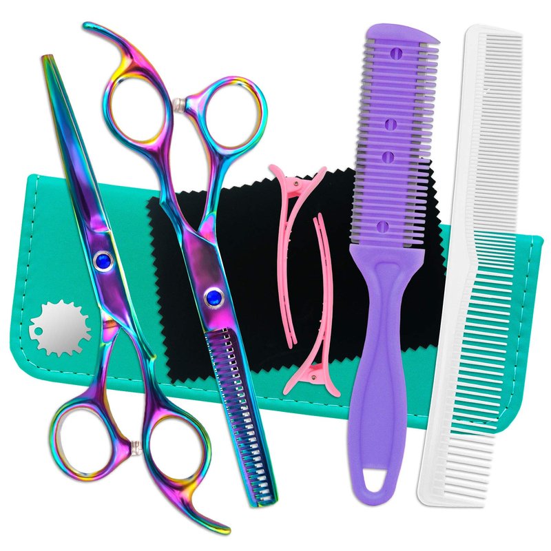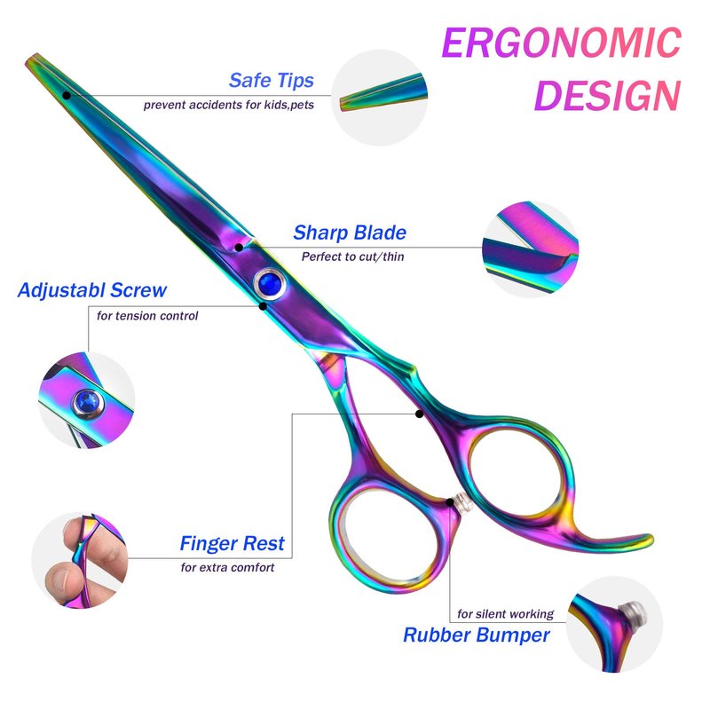 - Professional Hair Cutting Scissors Kit: There are 5 hair styling tools to make it convenient for professional or home use. It comes with a protective leather zipper case to preserve scissors and prevent accidents.