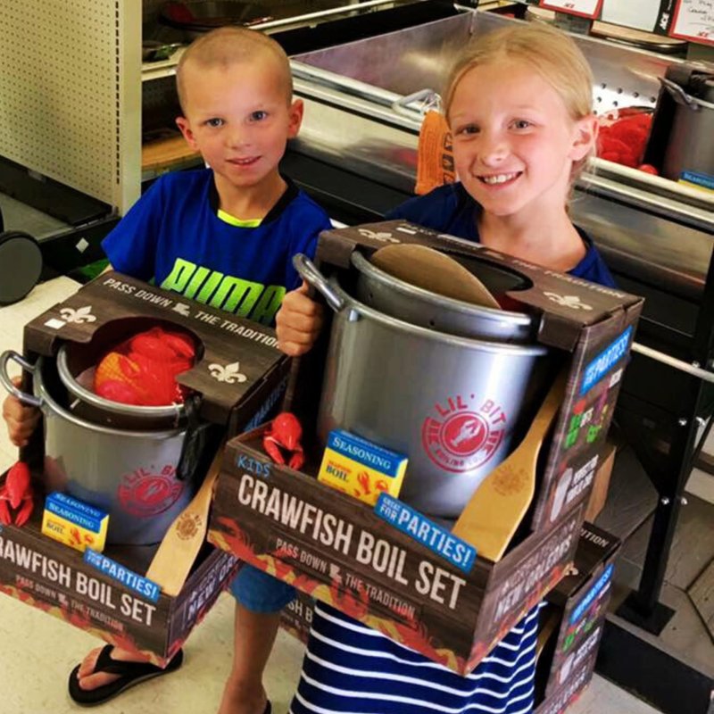 - Your little ones can cook Cajun style alongside mom and dad! A kids shrimp boil set for the whole family. Interactive Louisiana playtime for aspiring little chefs.