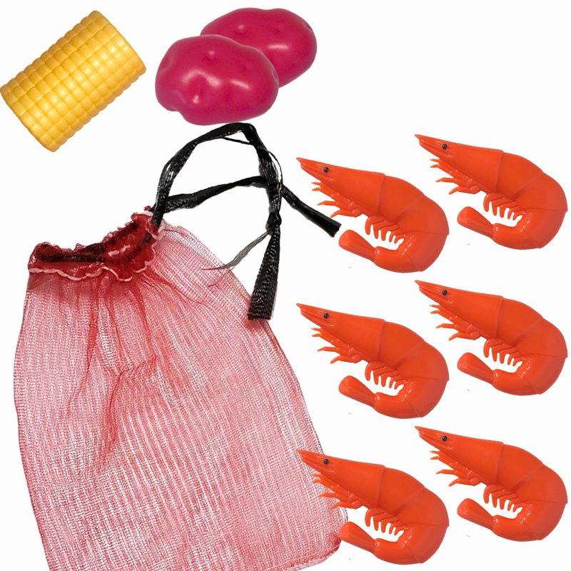 - Contains: 6 plastic shrimp, 1 toy corn-on-the-cob, 2 play potatoes, and one mesh bag with drawstring. Encourage your child's love for cooking with a New Orleans, Louisiana tradition