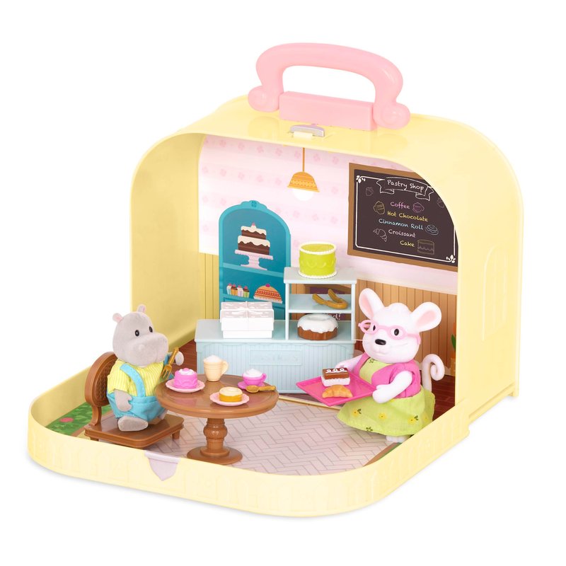- PLAYSET TO-GO: Bring your Li’l Woodzeez everywhere you go with the Travel Suitcase Pastry Shop Playset! This playset folds up into a handy and compact carrying case to take on playdates or even the park! Explore and collect all the travel suitcases Li'l Woodzeez has to over. Characters are not included.