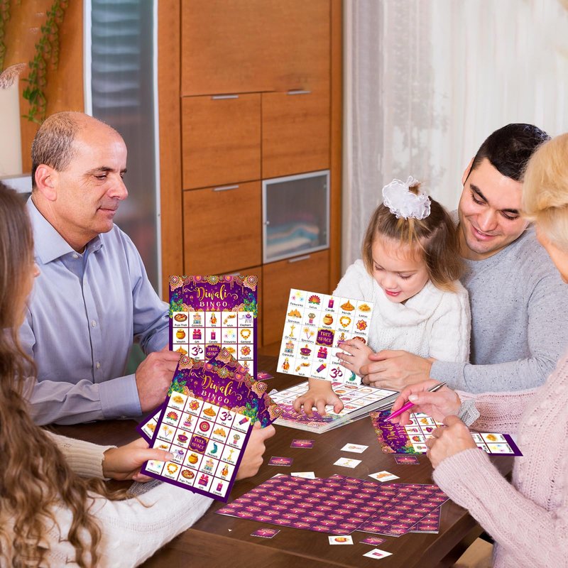 - Diwali Party Games: our Diwali games set includes 24 bingo player cards (24 different patterns per card), 10 sheets of marking chips (56 pieces of chips per card), 1 calling card; The Diwali bingo is ideal for Indian New Year party games