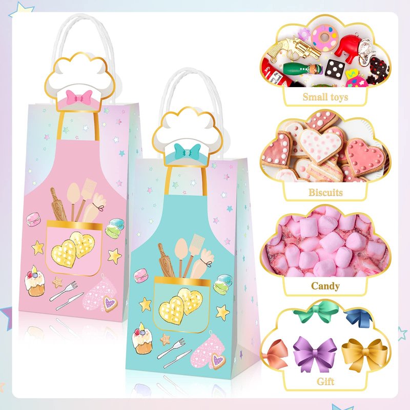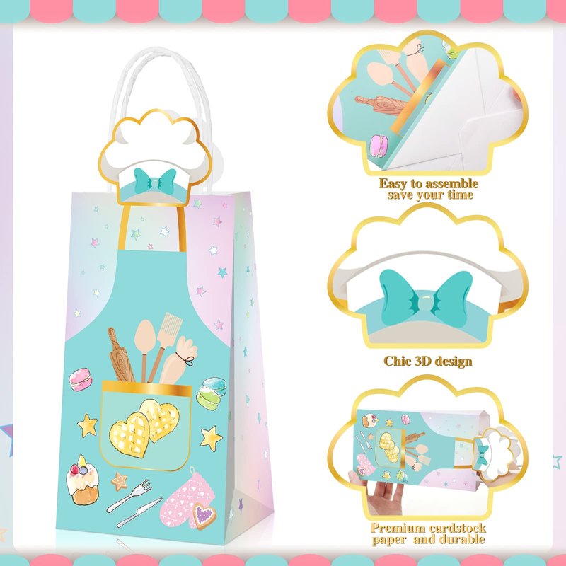 • Reliable and Useful: the 7.87" x 3.93" x 3.14" baking party bags are made of quality paper and printed with cakes, biscuits and kitchen utensils, if you want a baking party, remember to prepare in advance, providing you with nice party decorations
