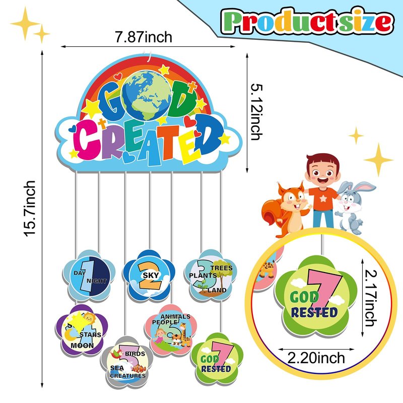 Features: Once the Sunday school craft is completed, children can take it home and put it on display for the whole family. This fun paper craft kit is a good way for children to learn about the 7 Days of Creation through a creative Sunday school activity. Specifications: Material: paper Color: as pictures shown Size: about 15.75 x 7.87 inch/ 40 x 20 cm Package includes: 24 x Jesus 7 Days of Creation craft kits Notes: Manual measurement, please allow slight errors on size. The color may exist a slight difference due to different screen displays. Winding risk may exist, please keep it away from kids.