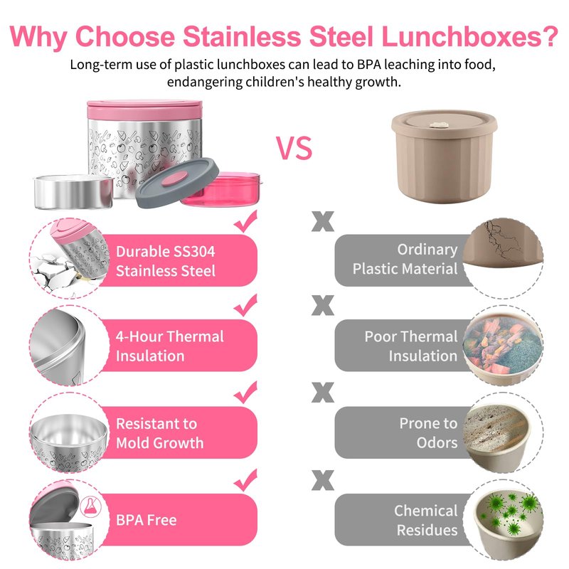 - Superior Temperature Insulation - The vacuum-insulated lunch box and insulated bag provide up to 4 full hours of warm retention, making it easy to enjoy tasty homemade food without the need for a microwave.