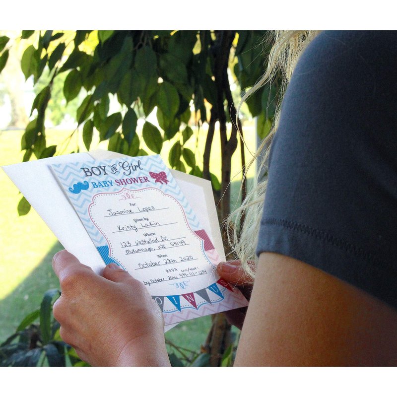 Lillian Rose 8-Piece Baby Gender Reveal Invitations, Pink/Blue/White, 5" x 7"