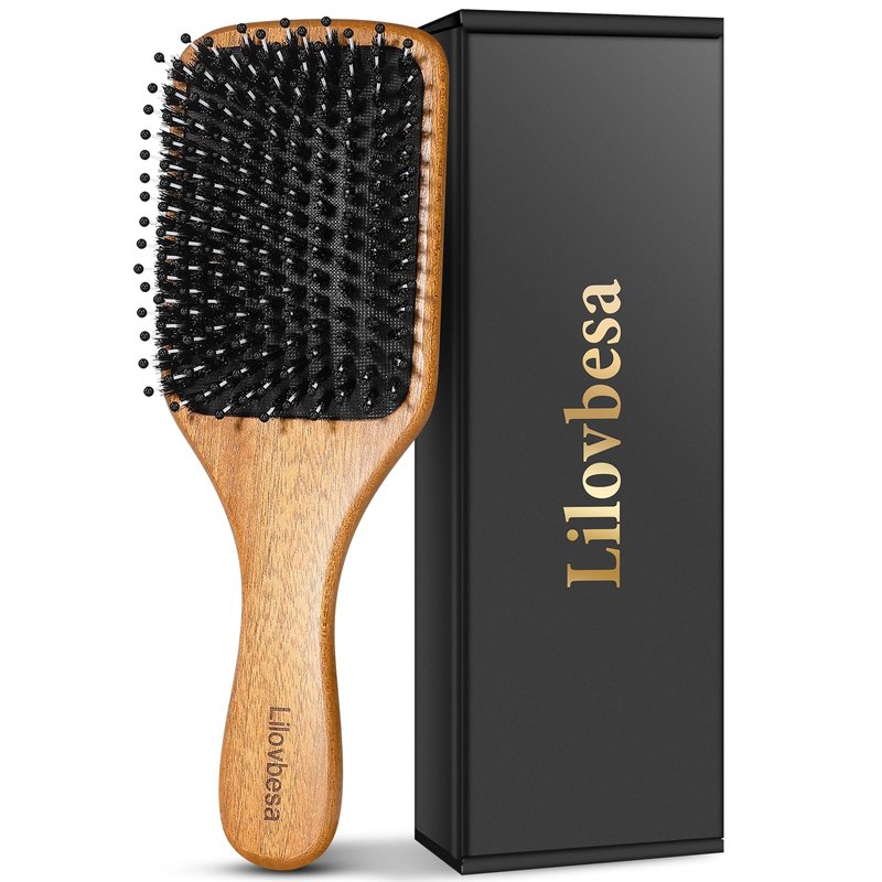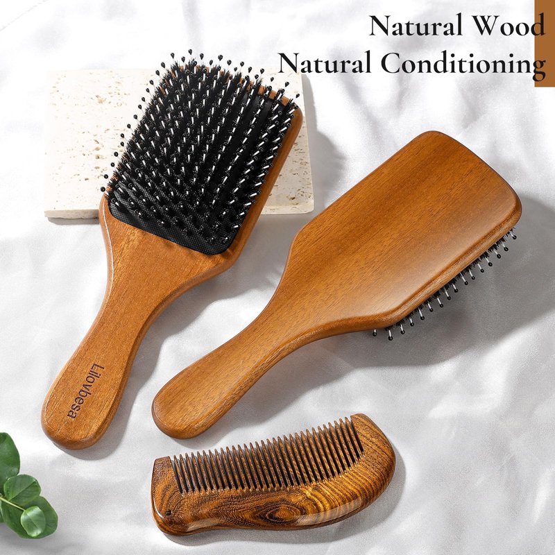 Lilovbesa Hair Brush,Boar Bristle Hair Brushes and Wooden Comb Set for Women and Men Normal Curly Thick hair,No Pulling,Improves Texture,Smooth Hair