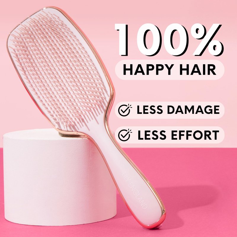 Lily England Detangling & Styling Brush - Pain-Free Brush for Curly Wet & Dry Hair With Flexible Bristles - Easy to Hold Rose Gold Brush for Women's 3c to 4c Curls