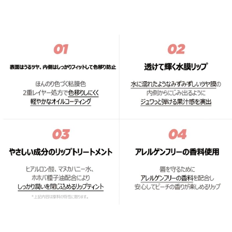 Elevate your lip game with Lilybyred's Glassy Layer Fixing Tint, now available in a spectrum of 13 vibrant colors. Unleash the benefits of this innovative lip tint that not only provides bright and long-lasting color but also leaves behind a captivating glossy finish. The transparent and buildable formula empowers you to create a myriad of lip looks, from a subtle tint to a bold statement, allowing your creativity to shine. Infused with a blend of nourishing ingredients, including hyaluronic acid, Manuka honey, and jojoba seed oil, this tint doesn't just enhance your lips with color but also keeps them moisturized and supple. Indulge in the delightful experience of the allergen-free peach scent, adding a touch of sensory pleasure to your lip care routine. Lilybyred's Glassy Layer Fixing Tint is not just a cosmetic; it's a fusion of vibrant hues, glossy allure, and lip-loving ingredients, making it a must-have for those who seek both style and nourishment. Upgrade your lip game with Glassy Layer Fixing Tint and embrace a world of versatile lip expressions, all while treating your lips to a hydrating and delightful experience.