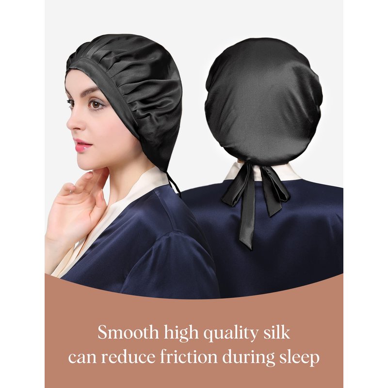 LILYSILK 100% Mulberry Silk Bonnet, 19 Momme Silk Night Sleep Cap Adjustable Hair Wrap for Sleeping, Black