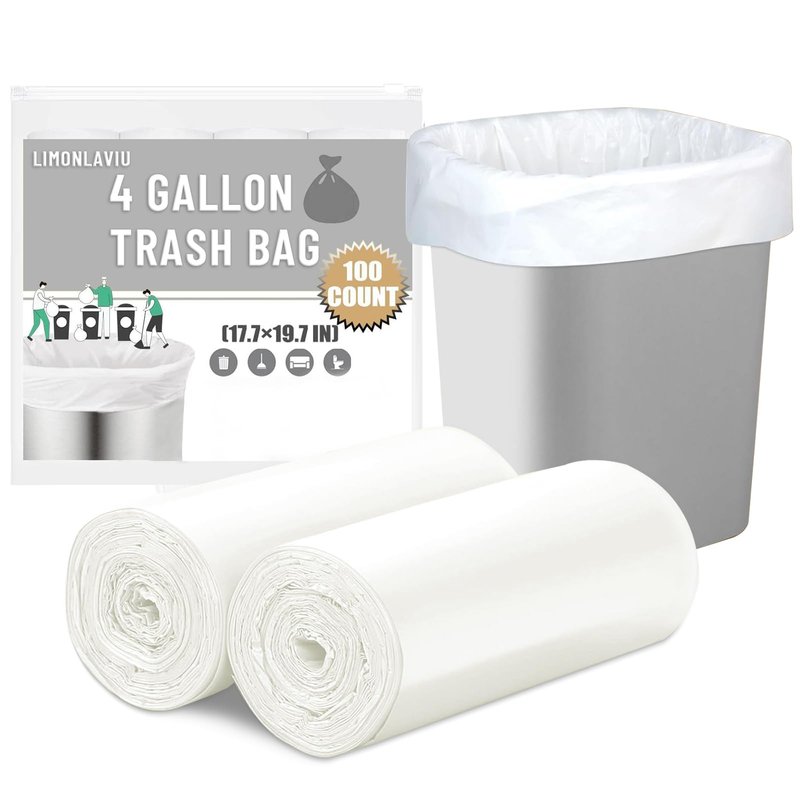 LimonLaviu Small Trash Bags 4 Gallon, 100 Count Small Garbage Bags Bathroom Trash Bags White Trash Bags Trash Can Liners Mini Trash Bags Trash Bags Unscented Small Garbage Bags for Bathroom Can