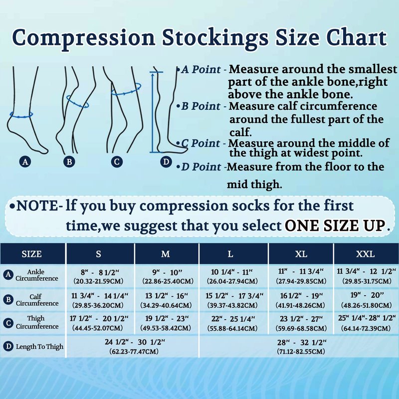- Perfect fit: Measure according to our size chart. If this is your first time to purchase compression socks or stockings, we suggest that you select One Size Bigger. Comes with Easy-to-wear foot slider accessory to help you slip on your stockings easily.
