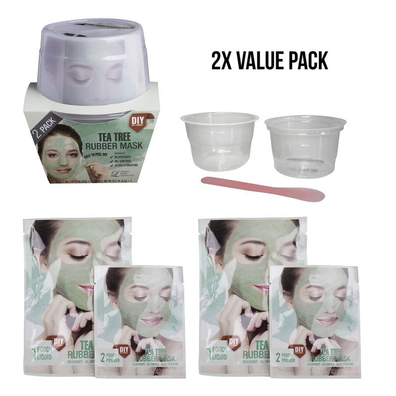 Lindsay Home Aesthetics Tea Tree Rubber Face Mask - Soothe Dry Skin by Reducing Itching and Irritation Rejuvenating, Oil Control, Hydrating Skin Benefits, 2 Masks 5.04 oz