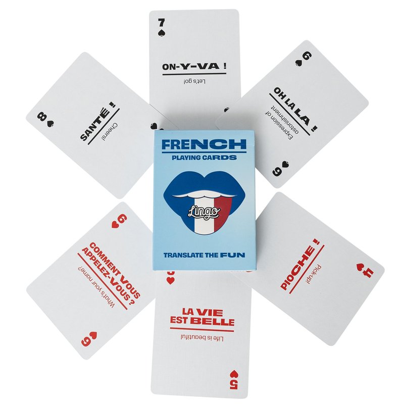 - EXPLORE AND PLAY ENDLESS –Add a touch of class and a dash of bilingual fun to your next game night. You can now learn French phrases and play your favorite card games like Poker, Black Jack, Spoons, Rummy, Go Fish, Memory, Crazy Eights, Hearts and Solitaire. Trust us, with these cards in your hand, you'll be the one everyone's talking about. Order your Lingo Playing Cards today and get ready for the most fun and exciting game night yet!