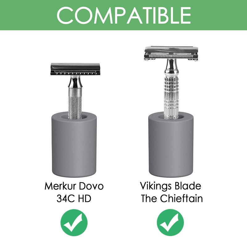 Linkidea 2 Pack Safety Razor Stand, Opening Dia 0.8" (2.2cm) Diatomite Men's Shaving Razor Holder for Bathroom Countertops, Compatible with Vikings, Merkur Double Edge Safety Razor (Grey)