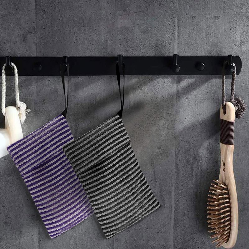 Linkidea 5 Pack Stripes Soap Bag for Soap Bars Bulk Pack, Wholesale Multi-Pack Exfoliating Sponge Body Scrubber Shower Soap Bag with Lanyard, Mesh Soap Saver Pouch for Foaming & Drying Soap Bags