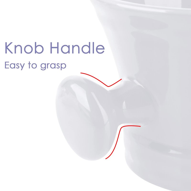 - Convenient knob handle can lift and hold shaving soap bowl at various angle, twist, turn, and get every bit of lather need.