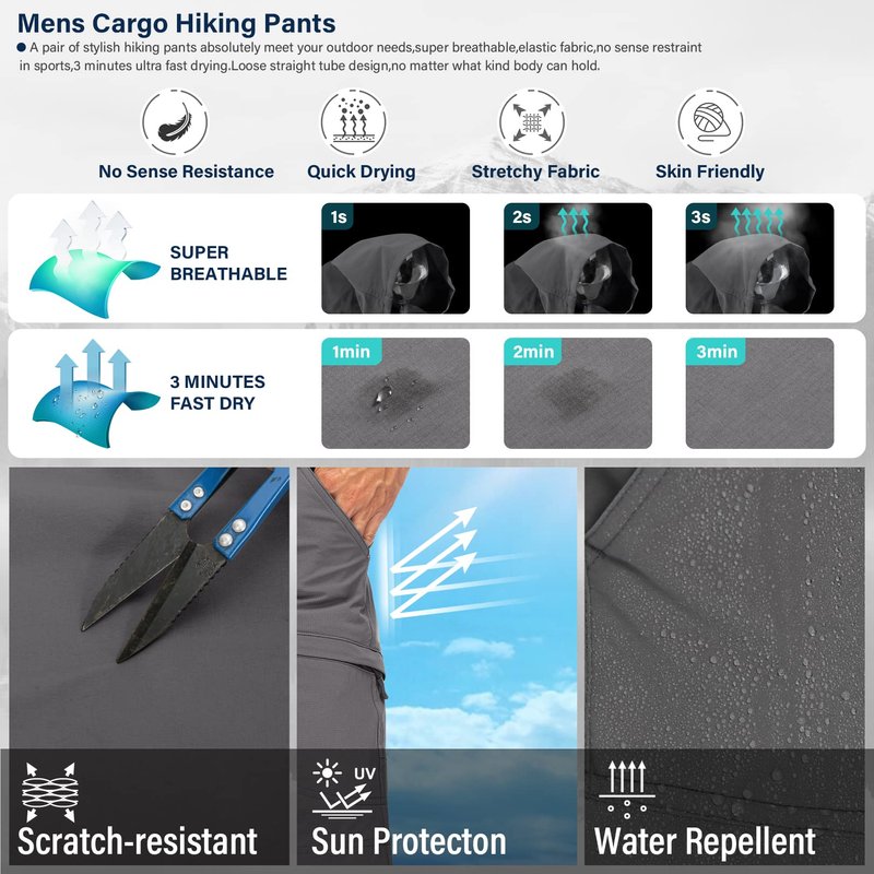 - Men's cargo pants are suitable for all weather and all seasons. In addition to hiking, these quick dry pants are ideal for other outdoor activities like mountain climbing, fishing, camping, and horseback riding.
