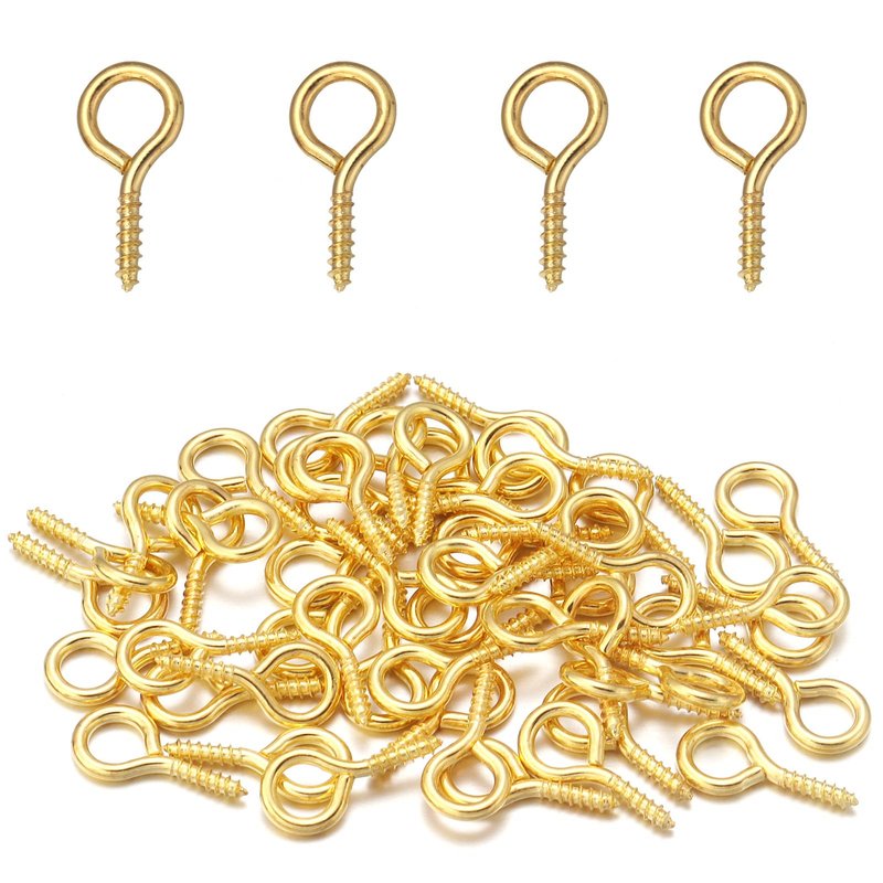 - Screw Eye Pins -- You will get 200 pcs 7X14mm gold tone screw eye pins. 7X14mm is the largest size in the market. If you are looking for large eyepins, these will be your best choice.