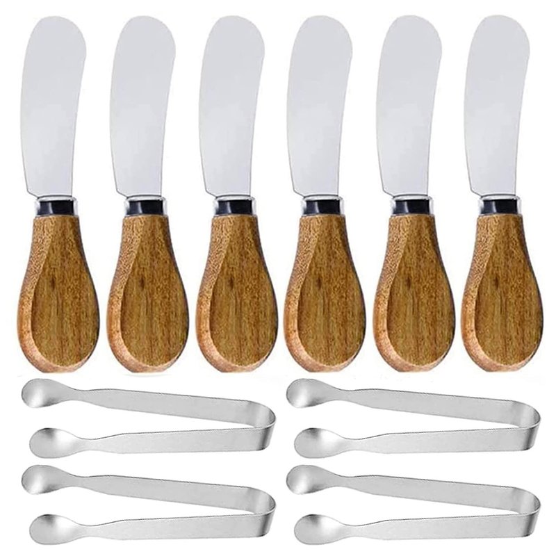 - MORE AFFORDABLE PRICE. It included 6-piece of spreads with wooden grips,4-piece sugar tongs.