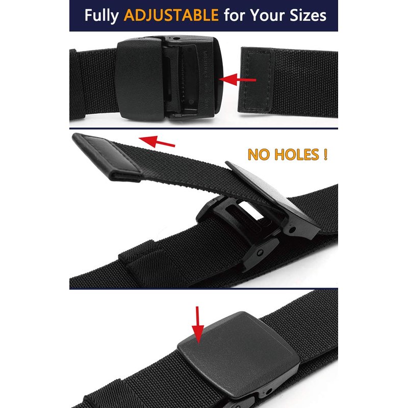 - FULLY ADJUSTABLE FOR YOUR SIZE: You can precisely adjust your belt to the perfect fit. Automatic Buckle,no holes in belt. ◆If the Strap is too long for you, you can trim the strap length to fit your own size. ◆This Canvas Belt Is Suitable for Pant Size Below 46inches Such as 32- 46in.