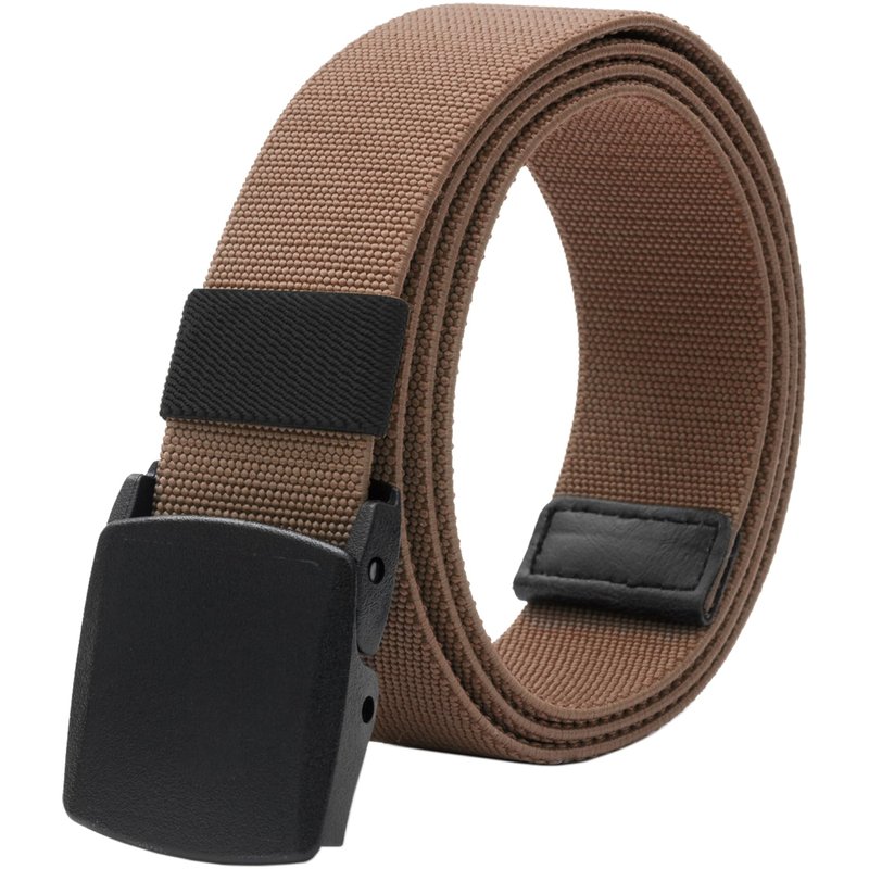 LionVII Men's Elastic Stretch Belt, Canvas Web Belt with No-metal Plastic Buckle for Work Outdoor, Trim to Fit Waist Below 46" (Brown)