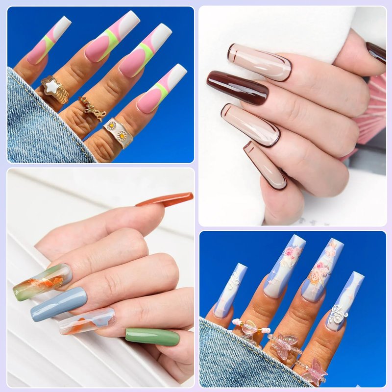 - Multiple Applications: These square false nail tips are the perfect accompaniment to nail polish and dip powder, experiment with different styles, get creative and express yourself with endless possibilities. In every date, reception, party, and dance, long square nail tips attract the attention of the people and becomes the most shining focus.