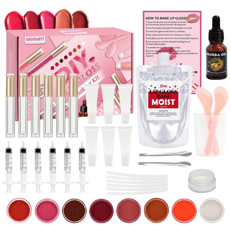 - PERFECT DIY LIP GLOSS SET: The Complete Lip Gloss Making Set includes 1x Lip Gloss Base Clear (140g), 8x Professional Lip Gloss Pigment Powder (1g), 6x Syringes, 6x Connecting Soft Tubes, 12x Empty Lip Gloss Tubes, 2x Beaker, 2x Stirring Sticks, 1x Jojoba Oil, 2x Powder Spoons, 1x Glitter Powder, 1x Instruction Manual. It meets all your lip gloss making needs.