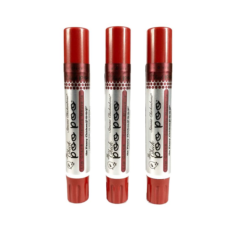 Claudia Mauve-ia is a soft natural mauve hue with a hint of shimmer. Perfect for every day wear and right into the night. Smooth on your lips for a gorgeous smile. Simone Chickenbone goes out on the town with the Fancy ChickenPoop, La Chick Poo Poo Lip Glace'. All new lip shimmers! The same all-natural ingredients with mineral based nude hues to add a bit of shimmer to your gorgeous kisser. Check out all 3 colors: Claudia Mauve-ia, Arora Pink, and Simone a go-go. Ingredients: Avocado Oil, Beeswax, Zinc Oxide, Essential Oil of Sweet Orange, Vitamin E. May Contain: Mica, Titanium Dioxide, Iron Oxide. Comes in Package of 3-Tubes. Contains No Poop. Not Tested on Animals.