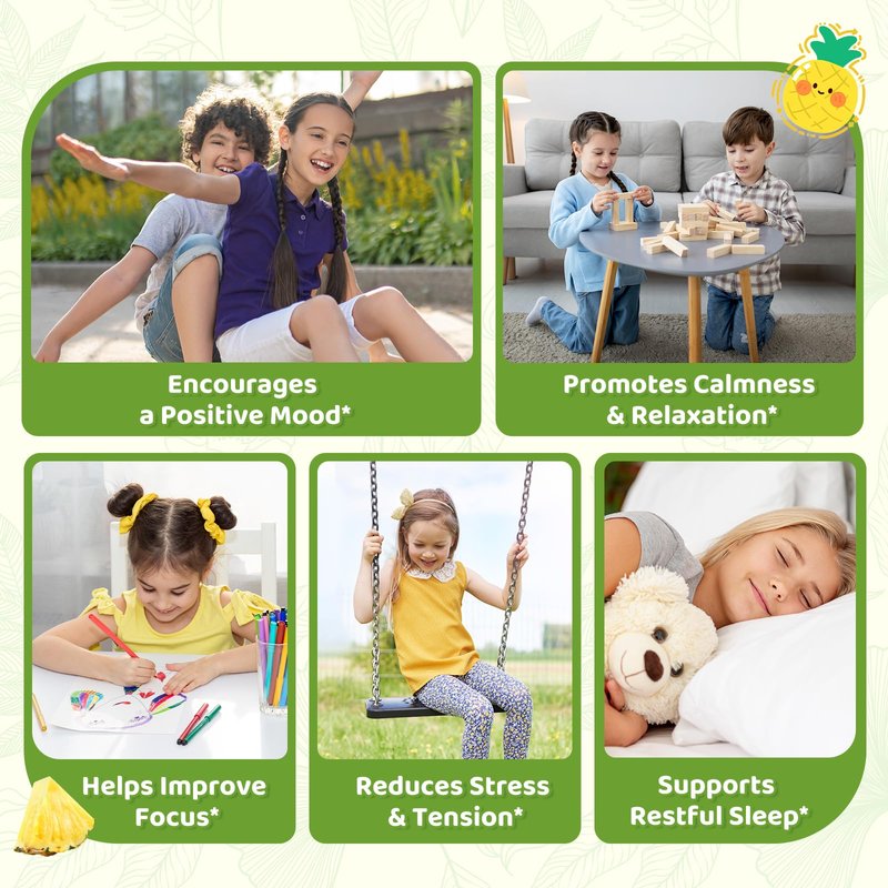 Liposomal GABA L-Theanine Drops for Kids - Liquid GABA Supplement with Magnesium, Chamomile, Lemon Balm & Vitamin B6 - Support Relaxation, Focus & Stress Relief for Kids & Adults - Pineapple Flavor