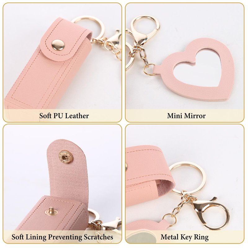- 【Mini Mirror Included】 The highlight of this keychain is the integrated mirror. The cute heart shaped mini mirror is perfectly sized for quick lipstick or lip balm application, allowing you to touch up your look effortlessly, anytime, anywhere. The small mirror is wrapped by PU leather circle to provide more protection.
