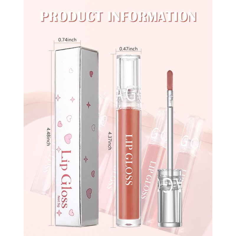 - AVAILABLE IN 6 COLORS - Our lip glosses are available in six different colors, the glossy transparent gives lip a hydrating shimmer, while the tinted gloss has highly pigmented qualities that bring vibrant and rich color to the lips, covering imperfections and revealing your perfect lip look.