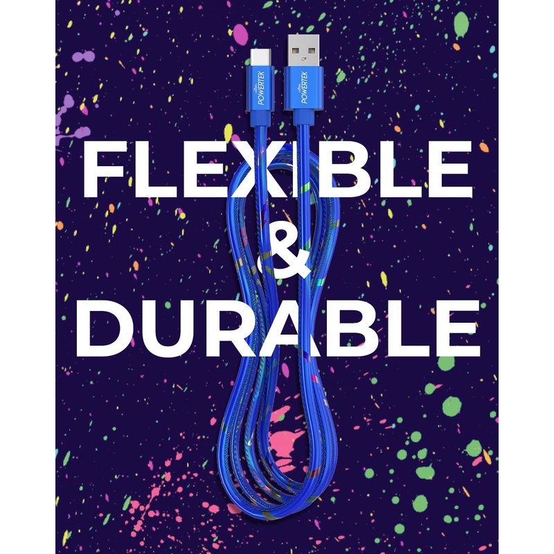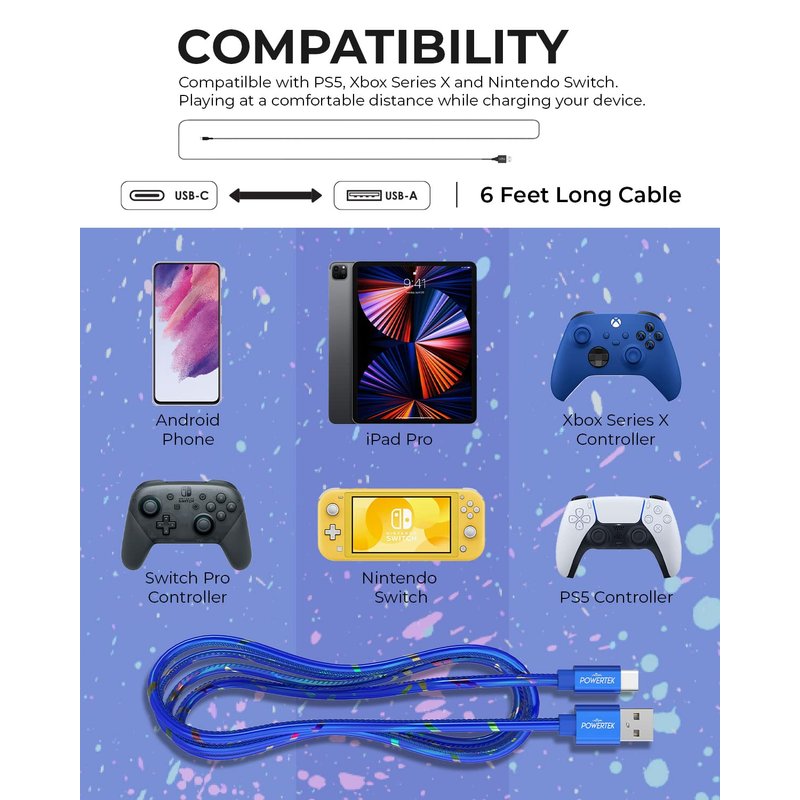 LIQUIPEL Powertek Type-C Fast Charger Cable, 6ft USB-C for Galaxy, Note, Tab, MacBook, Neon Party (Blue)