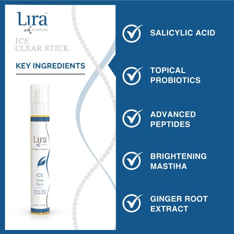 Lira Clinical ICE Clear Stick - On-the-Go Acne Spot Treatment Stick Infused with Salicylic Acid & Collagen Peptides - Quick Fix Pimple Stick to Combat Breakouts & Reduce Redness - 0.5 fl oz