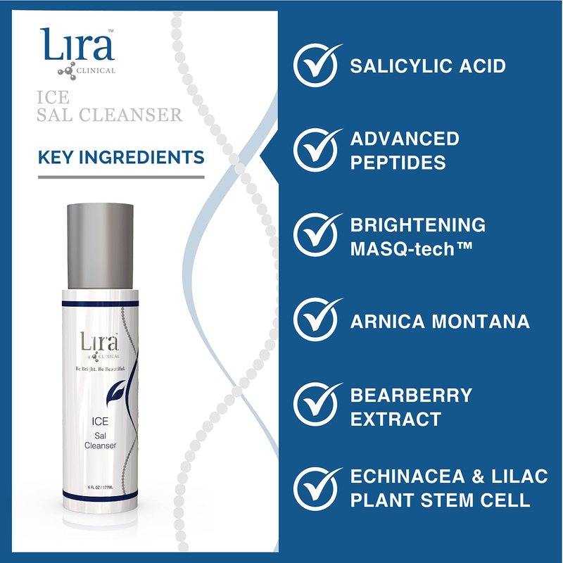 - Works for All - Lira Clinical ICE Sal Cleanser's soft, lightweight formula is suited for all skin types! This cleanser will help reduce indications of age, acne scars, hyperpigmentation, and dulling skin whether you have normal, dry, oily, or sensitive skin.