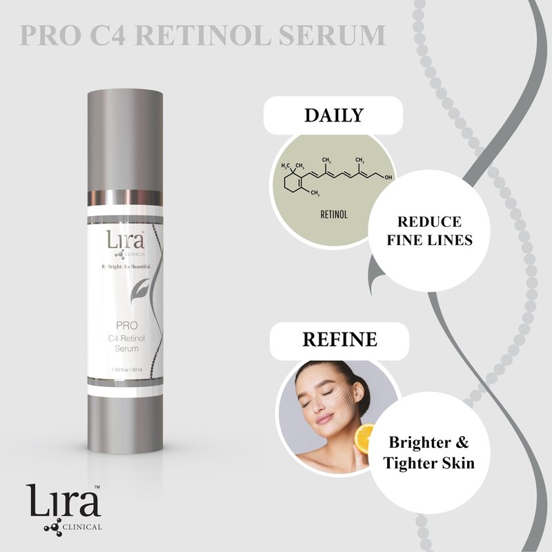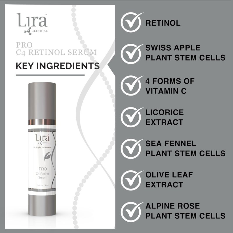 Lira Clinical PRO C4 Retinol Serum - Face Serum with Plant Stem Cells - Vitamin C Brightening Serum with Licorice and Olive Extract - 1.69 Ounce