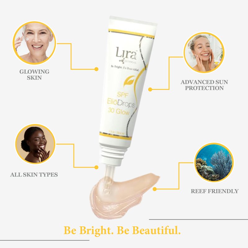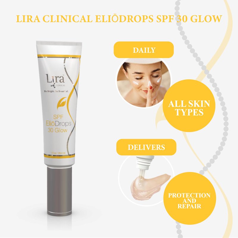 - Great for All Skin Types - Lira Clinical SPF EliōDrops 30 in Glow shade is deal for all skin types. This lightweight physical sunscreen for face can be used with or without additional color coverage, adapting to your personal preferences.