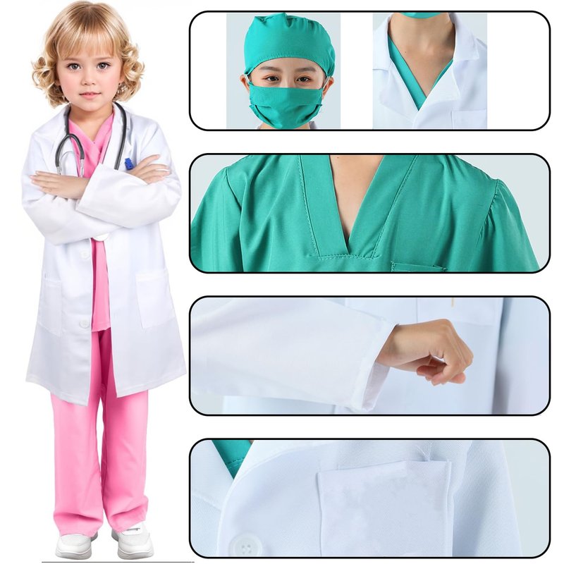 - 【Gift For Kids 3-11 Years Old】: This doctor costume can meet the needs of most kids. We offer 4 sizes of this kids lab coat and kids scrub, including extra small for 3-4 years, small for 5-6 years,medium for 7-8 years, and large for 8-9 years, And extra larg for 9-11 years, And we have marked the height and weight range suitable for what size. Please choose the appropriate size refer to the picture.