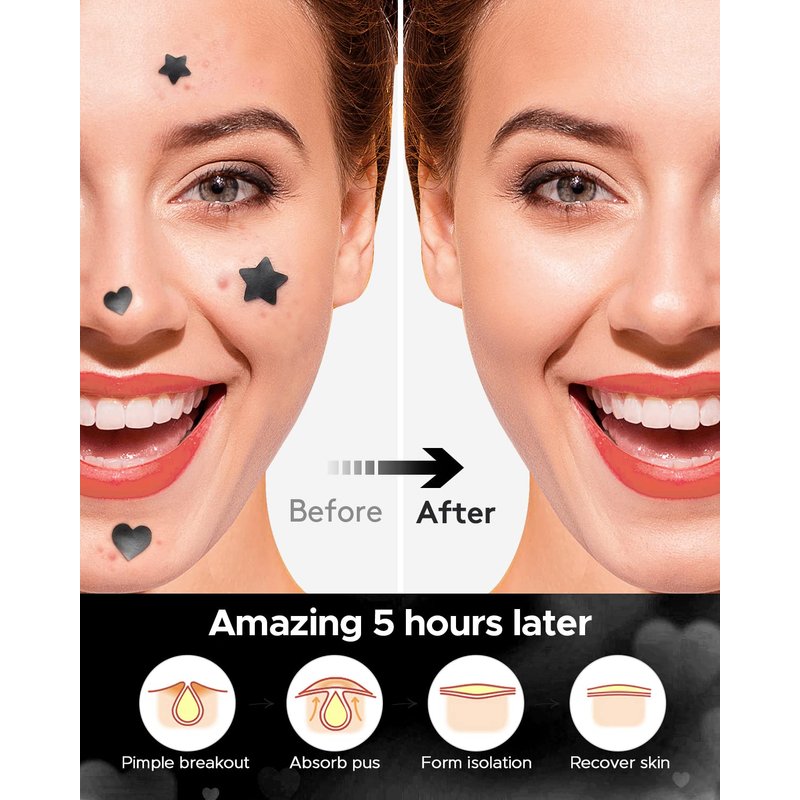 - Variety Sizes- LitBear cool & cute acne patches zit stickers offer 8mm and 12mm, black star & heart shaped, choose the best size for your acne area