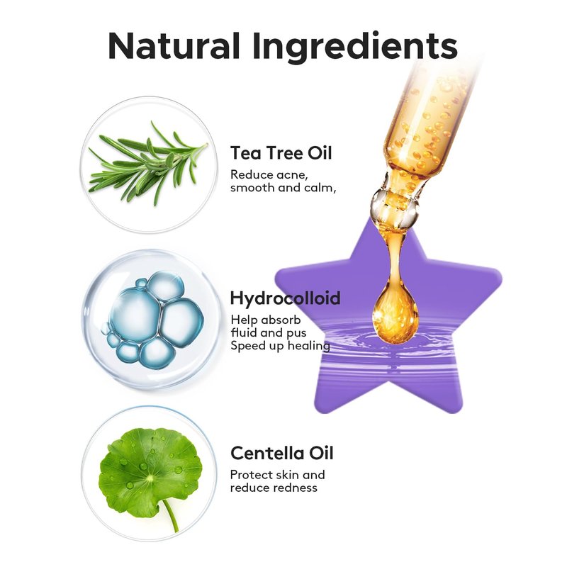 - 💫 Brilliant Adhesiveness- Made of hydrocolloid to help absorb fluid and pus, with brilliant adhesiveness, no falling even overnight.