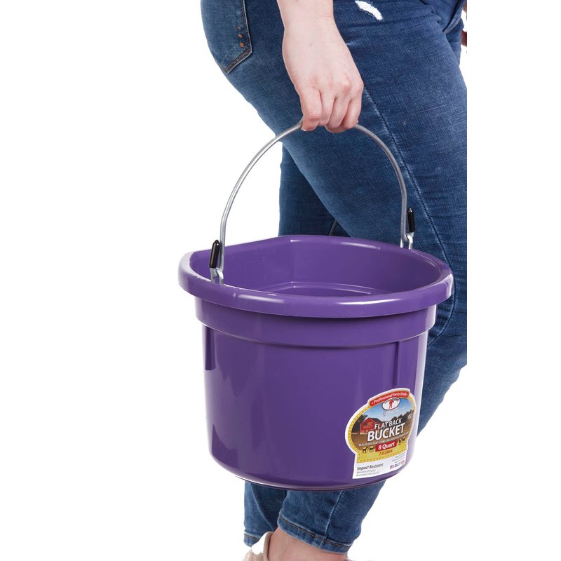 Little Giant® Flat Back Plastic Animal Feed Bucket | Animal Feed Bucket with Metal Handle | Horse Feed & Water Bucket | 8 Quarts | Purple