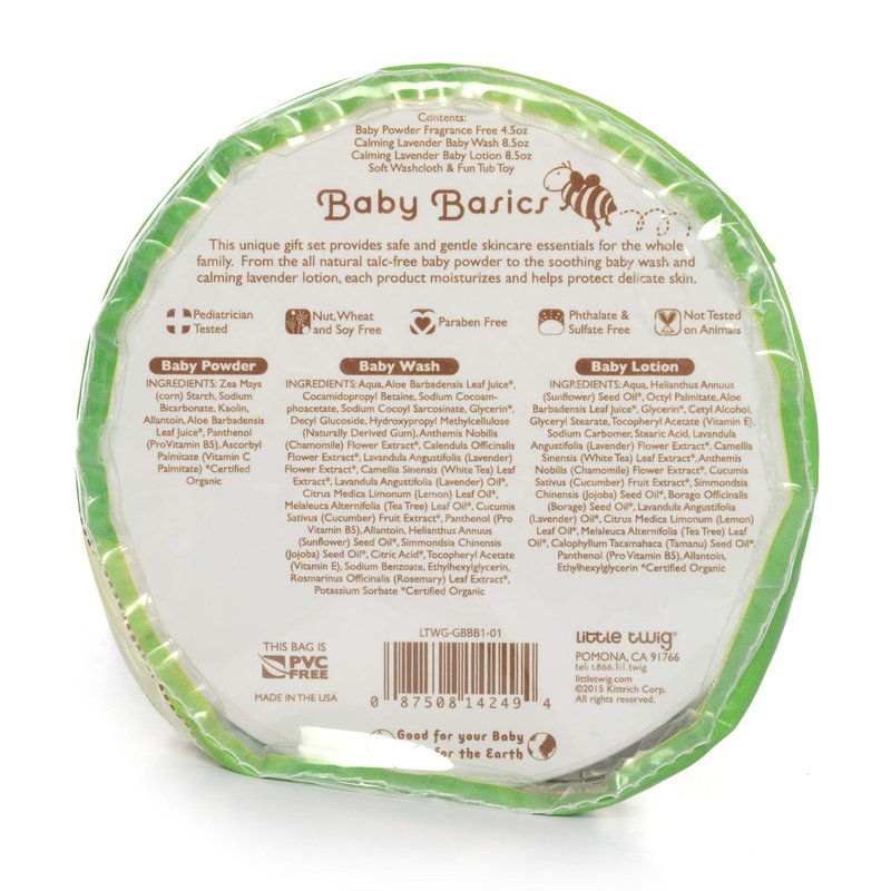Little Twig Baby Basics Baby Powder Plus Baby Wash and Lotion Washcloth and Tub Toy Gift Set, Lavender/Unscented, 1.9 Pound