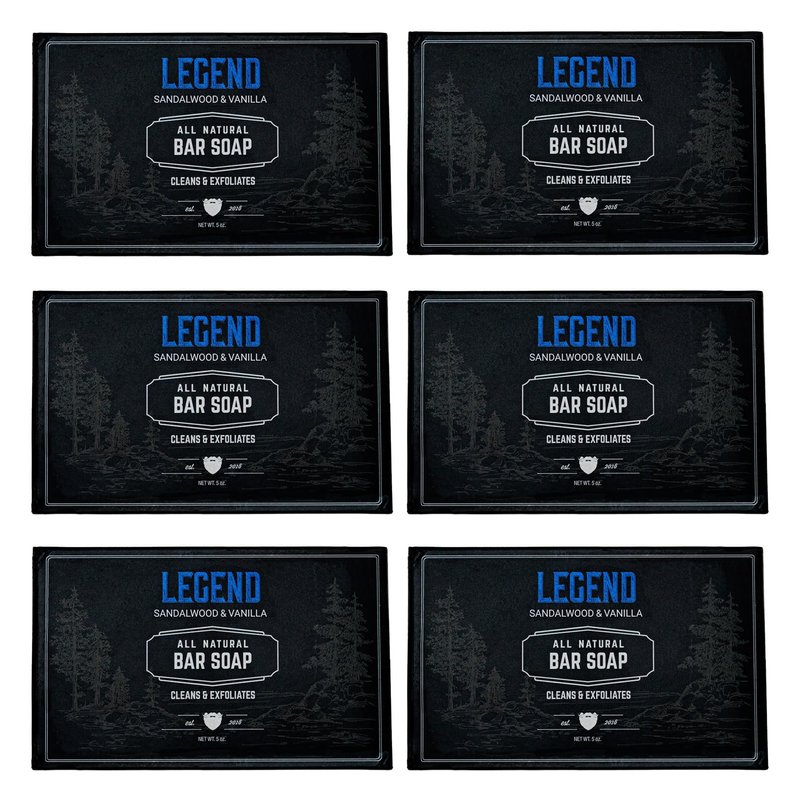Live Bearded: All-Natural Bar Soap For Men, 6-Pack of 5 oz. Bars, Made in the USA - Exfoliates, Moisturizes - Bamboo, Charcoal, Pumice, Coconut, Avocado, and Argan Oils - Legend Scent