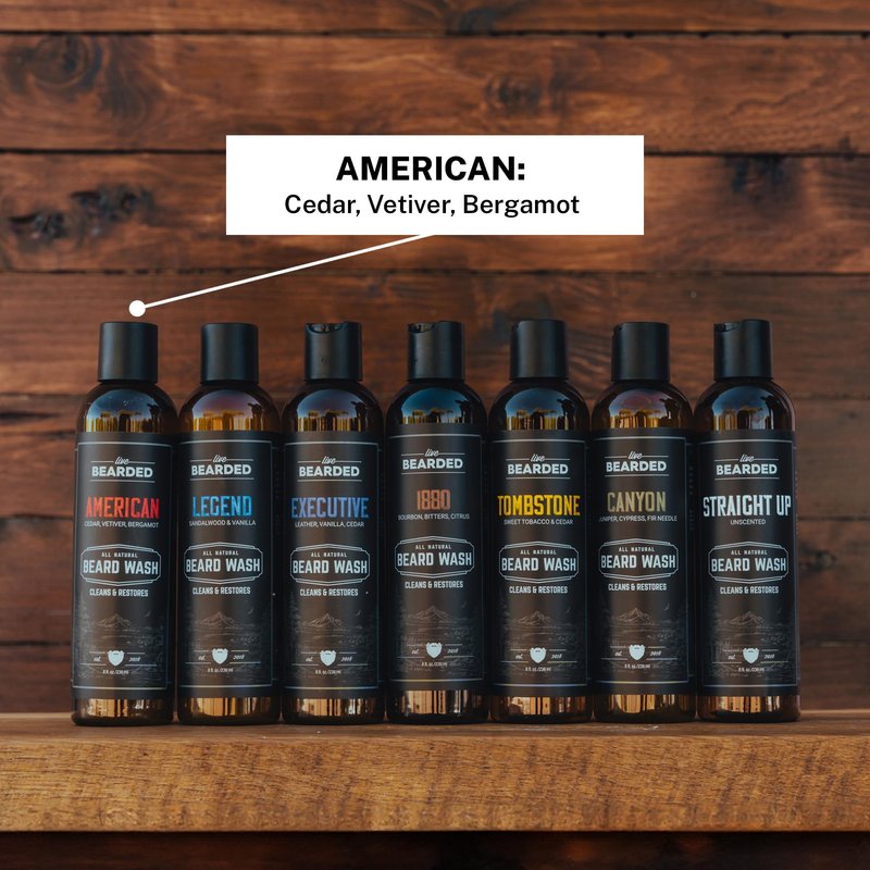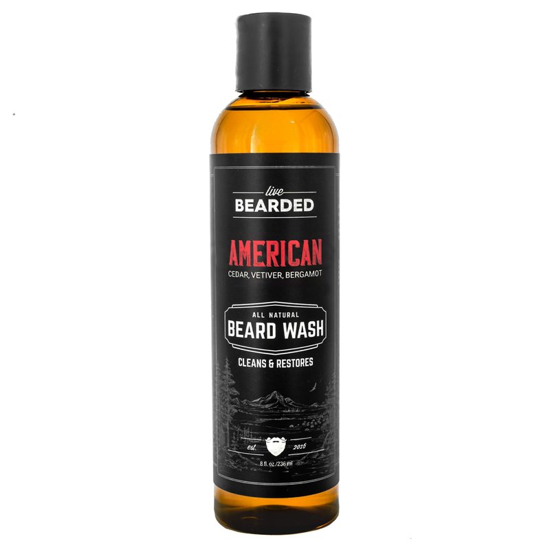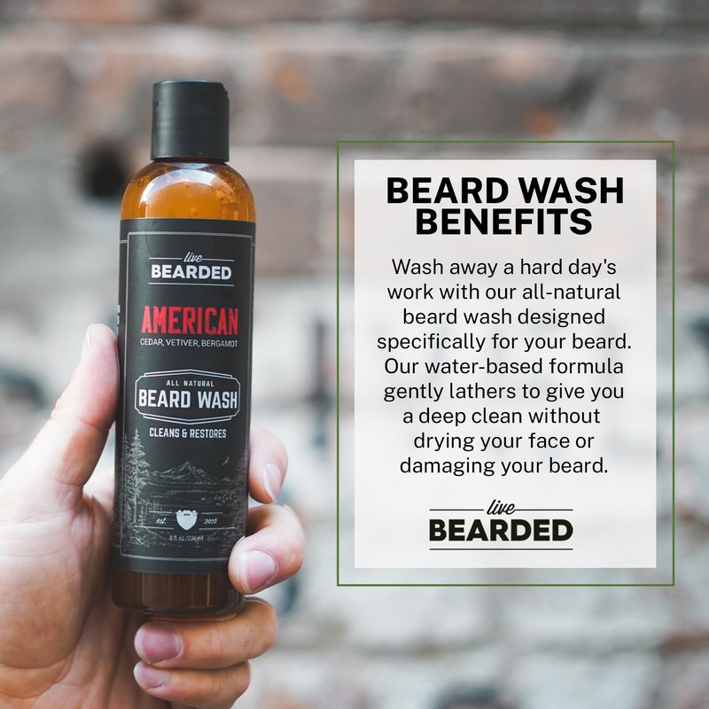 Live Bearded: Beard Wash - American - Beard and Face Wash - 8 fl. oz. - Water-Based Formula with All-Natural Ingredients for a Gentle, Deep Cleanse - Made in the USA