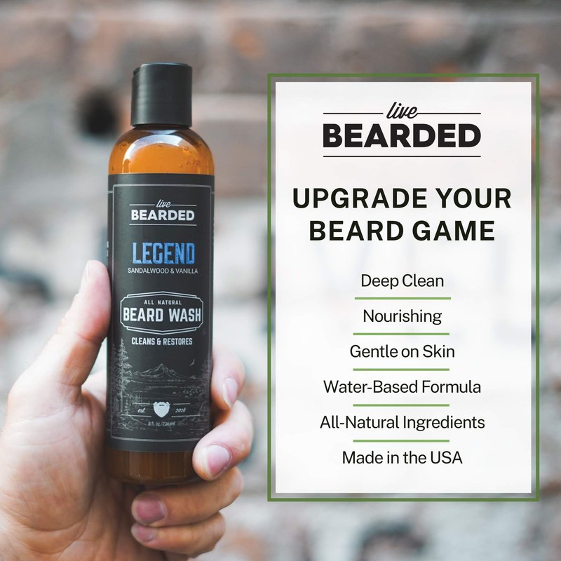 Live Bearded: Beard Wash - Legend - Beard and Face Wash - 8 fl. oz. - Water-Based Formula with All-Natural Ingredients for a Gentle, Deep Cleanse - Made in the USA