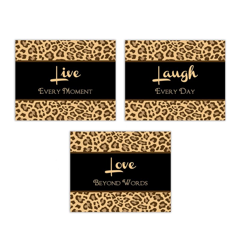 Live Laugh Love Animal Print Cheetah Wall Art Set of 3 5x7 or 8x10 Prints ((unframed))
