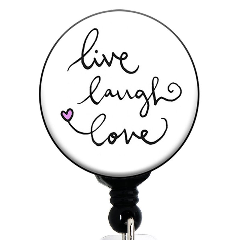 Live Laugh Love - Retractable Badge Reel with Swivel Clip and Extra-Long 34 inch Cord - Badge Holder
