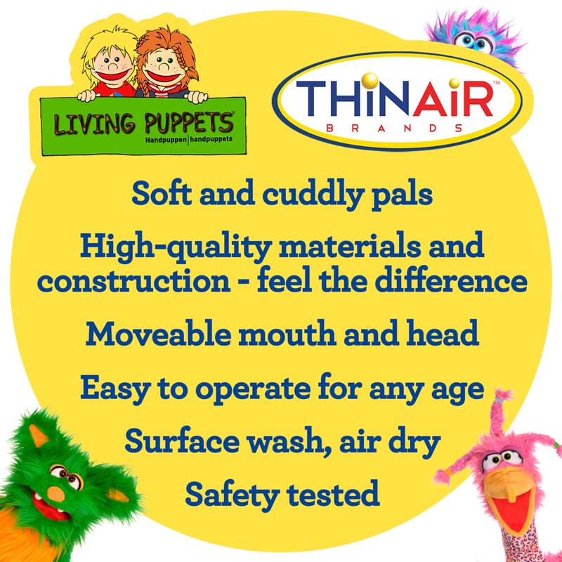 Introducing our Fine Hand-Made Beautifully Crafted Puppets, designed in Germany, and crafted with utmost care using the finest materials. These are the original Living Puppets, cherished by generations and unrivaled by imitations. Our hand puppets offer a plethora of benefits for children's development. They foster social and emotional learning, enhance speech and communication skills, fuel storytelling and role-play adventures, encourage imaginative play, nurture self-expression, and aid in fine-motor skills development. What sets our puppets apart is their exceptional softness and cuddliness. We spare no expense in using top-tier materials and construction techniques, ensuring that each puppet is a delight to touch and hold. With movable mouths and heads, they are easy to operate for all ages. Rest assured, our puppets meet and exceed safety standards, complying with both USA and Canadian regulations. Your child's well-being is our priority. Bring home these original Living Puppets today, and watch your child's creativity and development flourish. Whether it's for educational play or simply cuddling up for storytime, our hand puppets are the perfect companions. Don't miss out on the opportunity to provide your child with the best in quality and craftsmanship. Recommended by teachers, loved by parents, enjoyed by children of all ages.