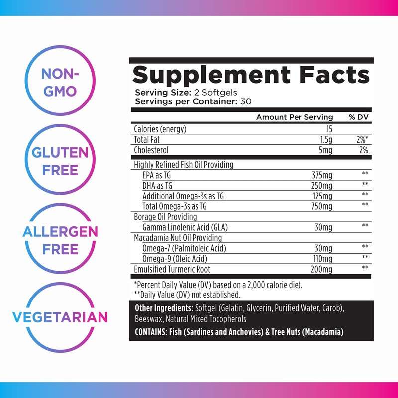- Unlock Your Full Potential: Omegas 3, 6, 7, and 9 have been shown to help support normal cholesterol levels and healthy metabolism. Emulsified turmeric has been added to help support antioxidant levels, and EPA and DHA may support brain health.