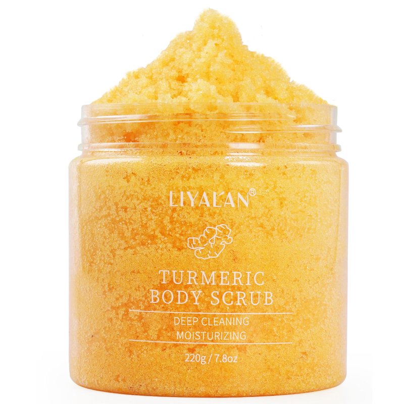- Liyalan turmeric body scrub is made with natural ingredients,It has been formulated with turmeric, shea butter, bergamot extract, and lemon grass essential oil, as well as oils that have a zero comedogenic, it won't clog pores and nourish skin well