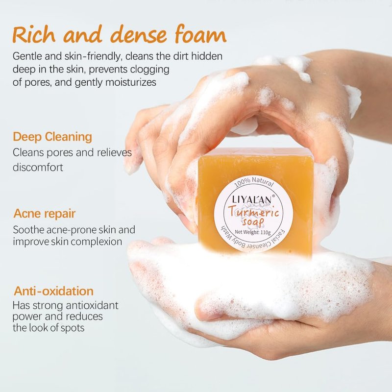 - 🍋Deep Cleansing: LiyalanTurmeric bar soap can clean pores and impurities,remove excessive oil and skin horn and dirt,sooth acne-prone skin.